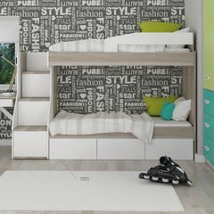 Cama cucheta apta para 2 colchones convencionales de 190 x 80 cm, con escalera de peldaños muy segura. Incluye un asa para tomarse al subir, es un producto apto para niños o pequeños adolescentes.